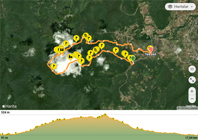 - Parkur :Çoğunlukla arazide orman içinde yürünür. Çalı ve sık bitkilerle karşılaşılabilir